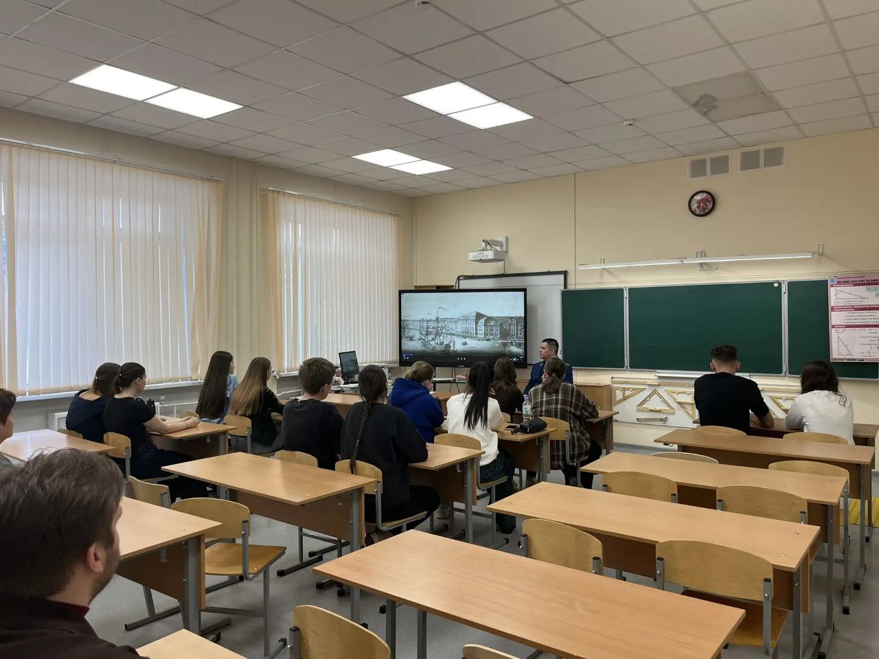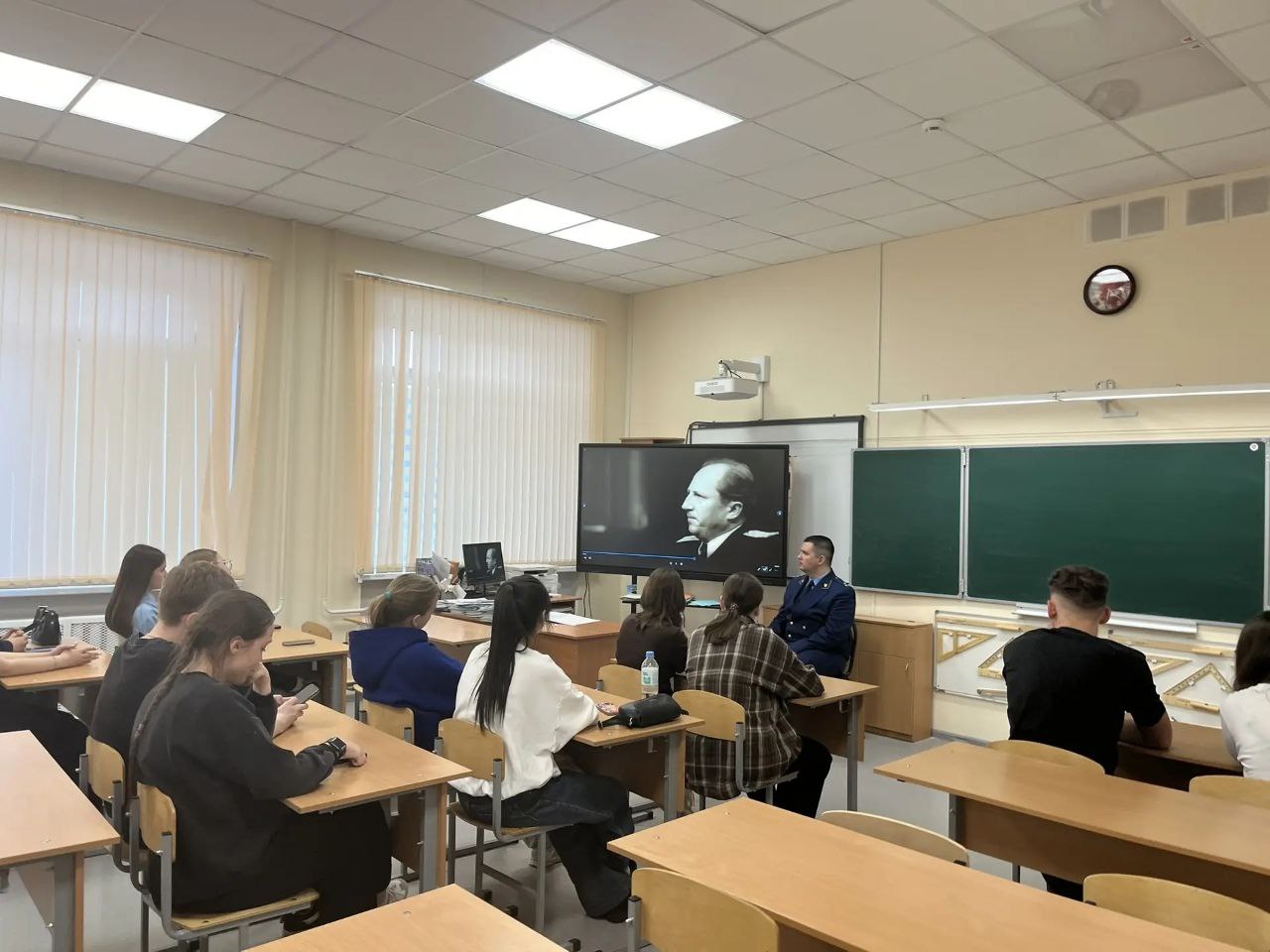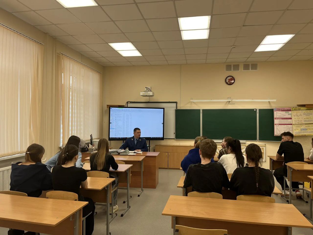Кольчугинский межрайонный прокурор Михаил Кузнецов на базе средней школы №4 имени Героя Советского Союза В.И. Веденеева» совместно с начальником управления образования администрации Кольчугинского муниципального округа Еленой Прокофьевой провел встречу с учащимися одиннадцатых классов нескольких образовательных учреждений города Кольчугино, которые планируют получить профессию юриста.