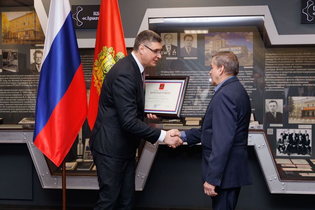 В музее «Ковров – город оружейной славы» вручил государственные награды работникам предприятий. Ковровские специалисты – гордость оборонной отрасли. Вооружают Российскую армию для победы. Ещё раз поздравляю тружеников с заслуженным признанием