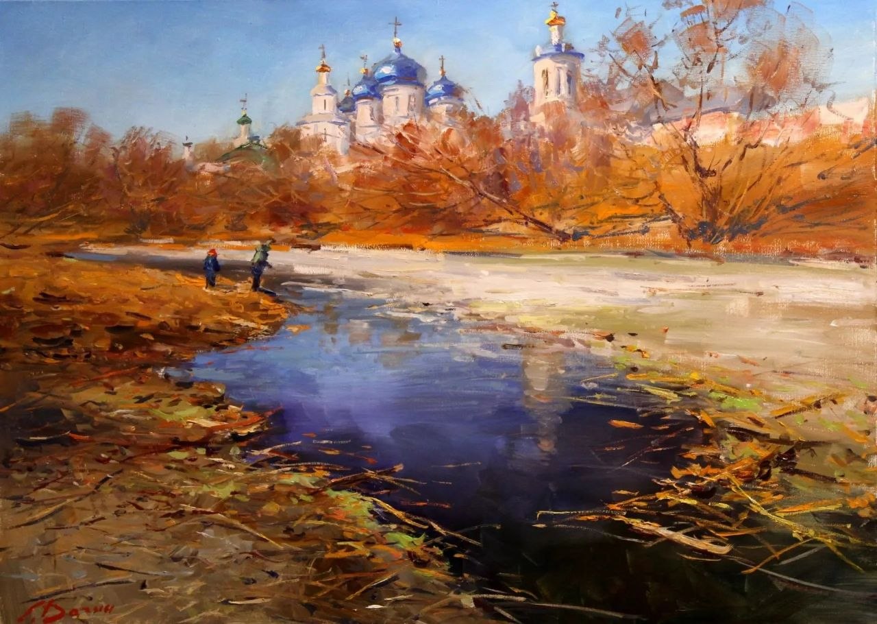 картина: Евгений Вагин «Апрель в Боголюбово»