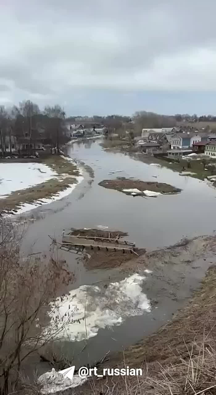 Первая переправа, пострадавшая от паводка. На реке Каменка около Спасо-Евфимиева монастыря сломался деревянный мост и поплыл по течению.