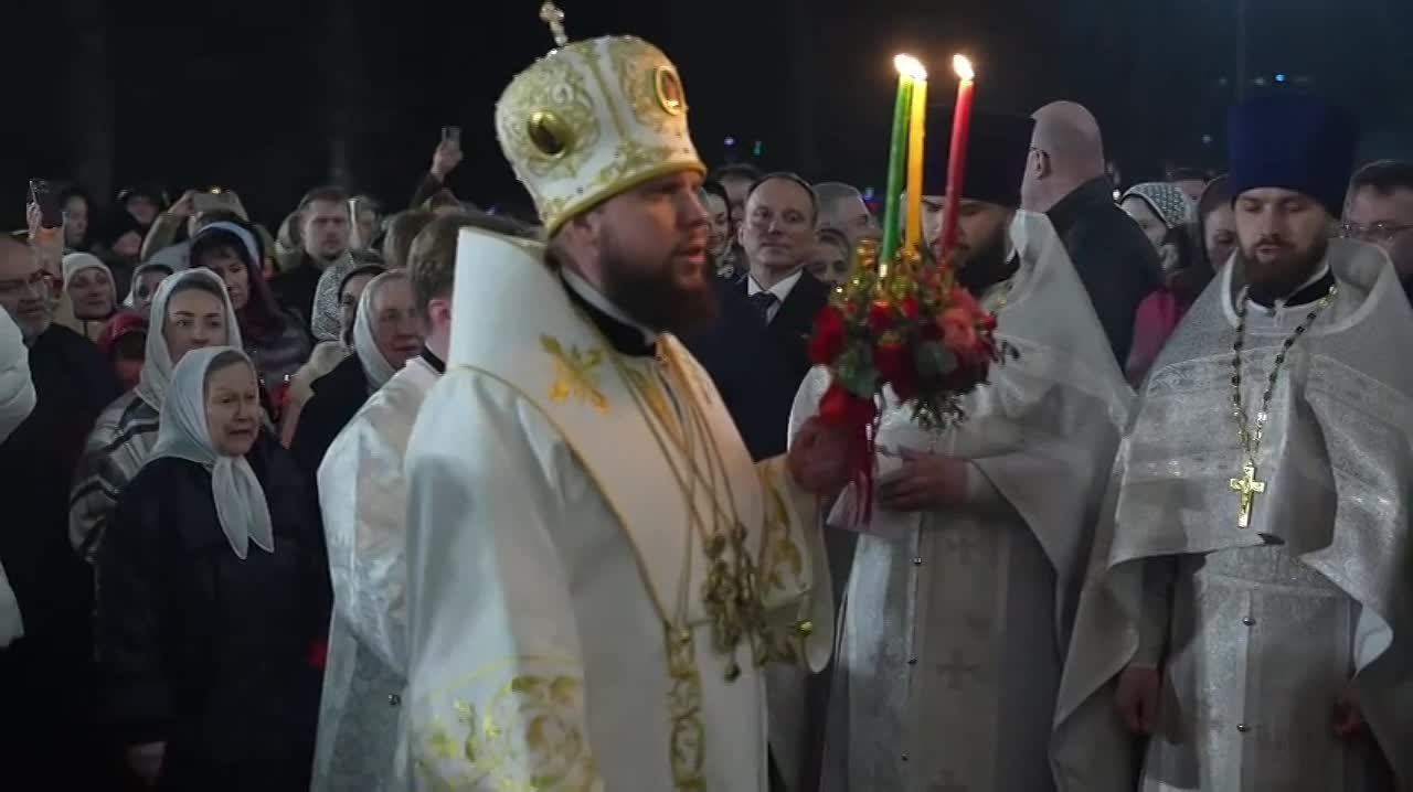 Сотни жителей Владимира пришли на Пасхальную службу в Успенский собор