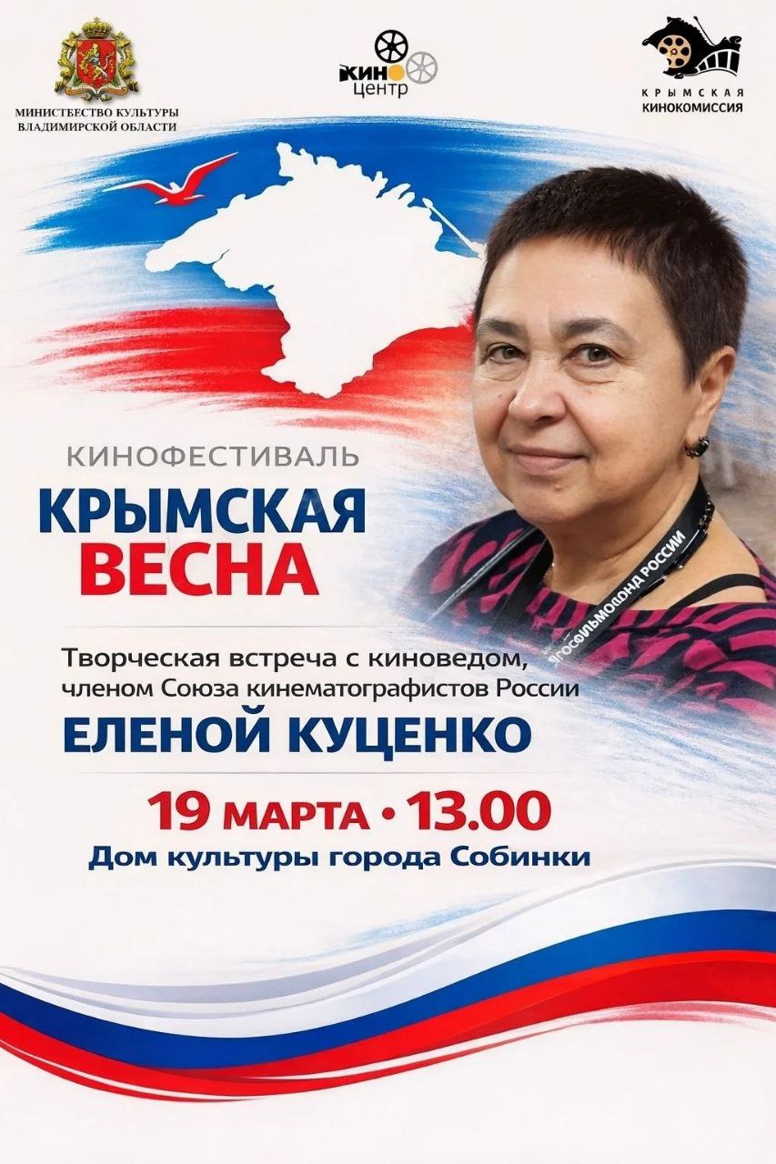 в гости к жителям Собинки пожалует заслуженный работник культуры Республики Крым, киновед Елена Куценко. Она представит фильм «Русский аромат французских духов»