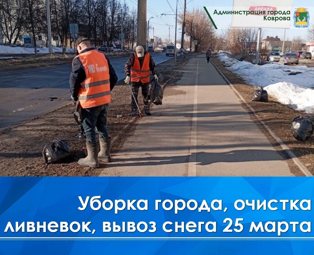 Сегодня, 25 марта, сотрудники МКУ «Город» вывозили снег на ул. Еловой, чистили ливневую канализацию на ул. Строителей. На ул. Зои Космодемьянской, ул. Ватутина проводилась уборка остановочных пунктов и случайного мусора. На ул. Грибоедова убирали ветки. Частично очистили от смёта дорогу на пр. Ленина. На пл. Победы вручную убирали случайный мусор.