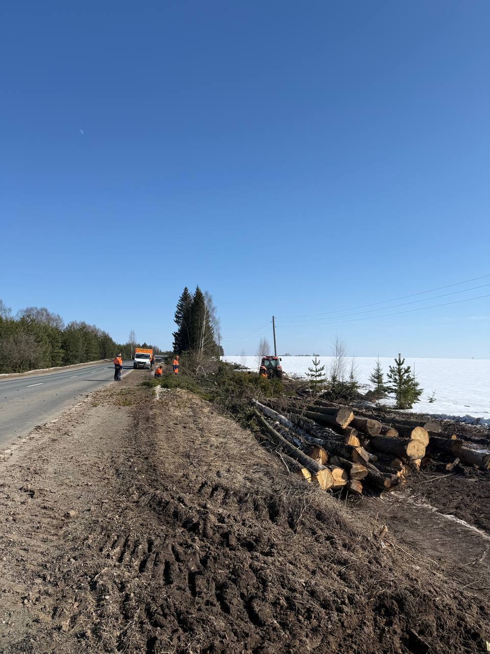 Специалисты убирают лишние деревья и кустарники в районе села Сима. Границы полосы отвода — от 10 до 15 метров от проезжей части. Именно столько нужно, чтобы дорога была безопасной и соответствовала нормативам.