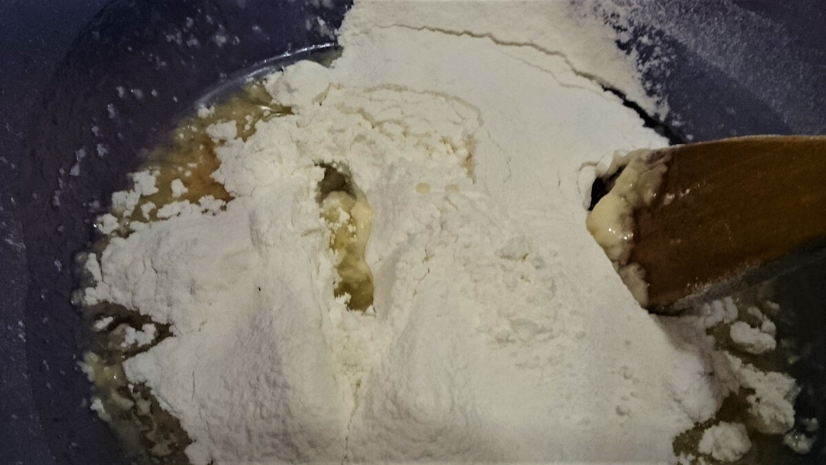 Приготовление теста: в миске соедините воду, сахар, соль, яйцо и масло. Постепенно добавляя муку, замесите тесто и дайте ему подойти в теплом месте на час.