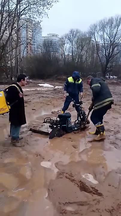 Спасатели уточняют, как только вытащили первый электровелосипед, на горизонте появился новый курьер. Его заботливо отправили в объезд.