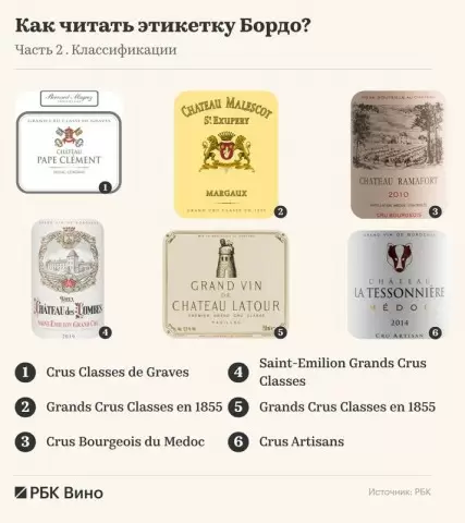 Самые известные коды — Grands Crus Class?s en 1855 — обозначают изначальную вершину. Здесь выделяются пять шато первоклассной линии и ещё более широкий круг второй, третий и последующих классов. Для бытового выбора это означает, что ближе к топу чаще попадают вина с заметной историей и крупной производственной мощностью, поэтому бутылки из первых классов обычно дороже и крупнее по вкусу.