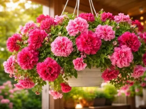 Ампельные петунии — это настоящие водопады цвета. Их длинные, свисающие побеги отлично подходят для подвешенных корзин и кашпо. Они создают эффект завораживающего водопада, который будет радовать глаз на протяжении всего сезона.