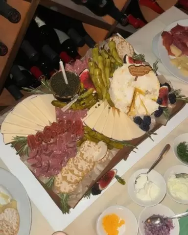 Необычный подход к угощениям стал визитной карточкой вечеринки. Вместо традиционного праздничного торта, гости наслаждались изысканными блюдами, среди которых выделялись аппетитные нарезки и деликатная икра, что добавило особую нотку к этому событию.