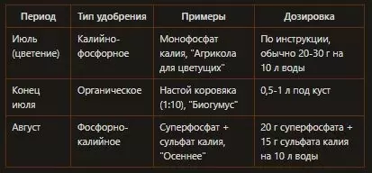 - Подкормка. В этом сезоне нужно уделить внимание специальным удобрениям. Важно прекратить внесение азотных удобрений во второй половине августа, чтобы избежать стимулирования нежелательного роста.
