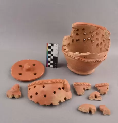 Анализируя курильницу, можно было заметить, что она была покрыта слоем загрязнений, а крышка имела множество мелких сколов. Весь сосуд был разбит на восемь фрагментов, некоторые части разрушились, а стенки были пронизаны трещинами. Это создавало серьезные проблемы для его дальнейшего использования и сохранности.