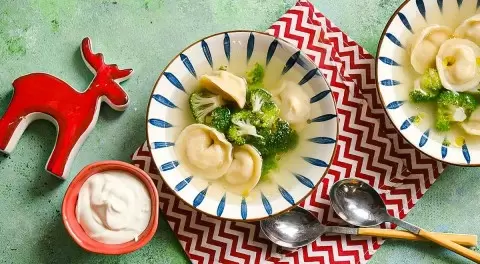 Суп с пельменями и брокколи не только прост в приготовлении, но и полезен. Он сочетает в себе множество овощей, включая брокколи — один из самых полезных овощей. Брокколи богата витаминами С, К и А, а также содержит антиоксиданты и клетчатку. Этот овощ способствует укреплению иммунной системы и улучшению пищеварения, оставаясь при этом низкокалорийным.