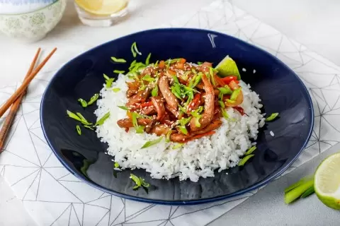 Как же насыщенно и разнообразно можно приготовить свинину! Не уступает в качестве и экзотический вкус глазированной свинины со шрирачей с гарниром из риса Жасмин. Это блюдо понравится как любителям острого, так и тем, кто ценит гармонию азиатских вкусов.
