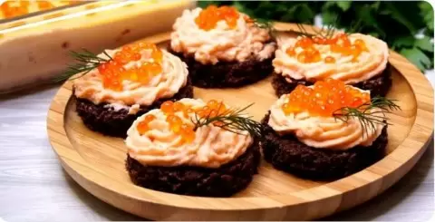 - Канапе с лососем: нанести сливочный сыр на черный хлеб, сверху уложить лосося и украсить пером зеленого лука. Простота и элегантность!
