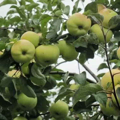 Плоды яблони имеют уникальную форму: сильно уплощенные и ребристые, с зеленоватой окраской, переходящей в желтоватую при хранении. Плотная кожура помогает сохранить свежесть и защищает от внешних воздействий. Вкус, оцененный как отличный, сочетает кисло-сладкие нотки с винным привкусом, что делает яблоки идеальными для мочения, компотов и варенья.
