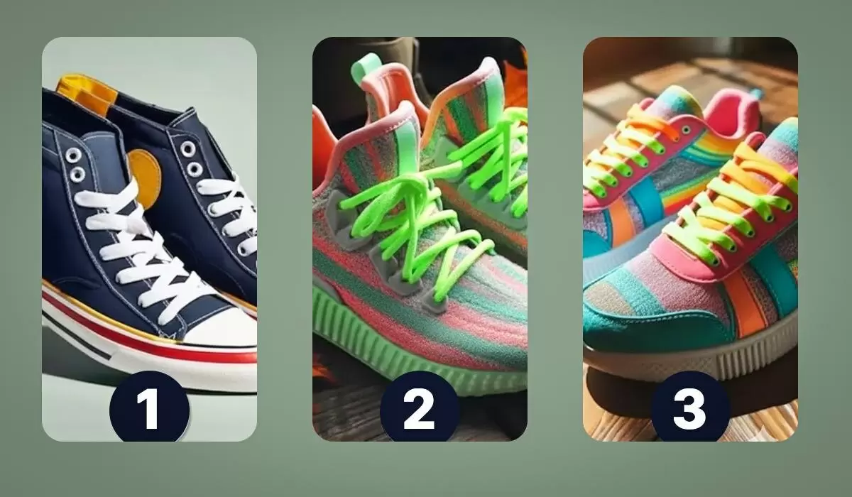 Перед вами изображение с тремя разными парами кроссовок. Внимательно посмотрите на них и выберите ту, которая наиболее привлекает вас по форме и цвету. Дайте свободу своей интуиции, а затем ознакомьтесь с интерпретацией вашего выбора.