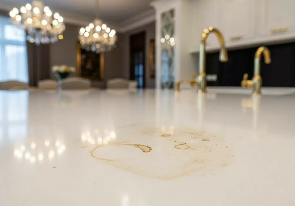 Акрил — это пористый материал, который на первый взгляд кажется гладким, однако на микроскопическом уровне он напоминает губку. В кофе содержатся танины — мощные красители, которые проникают в его микропоры всего за считанные минуты. Температура горячего напитка усугубляет ситуацию, открывая «двери» для этих красителей. На белых столешницах любой, даже легкий желтоватый оттенок, становится заметным, что критично в премиум-интерьере.