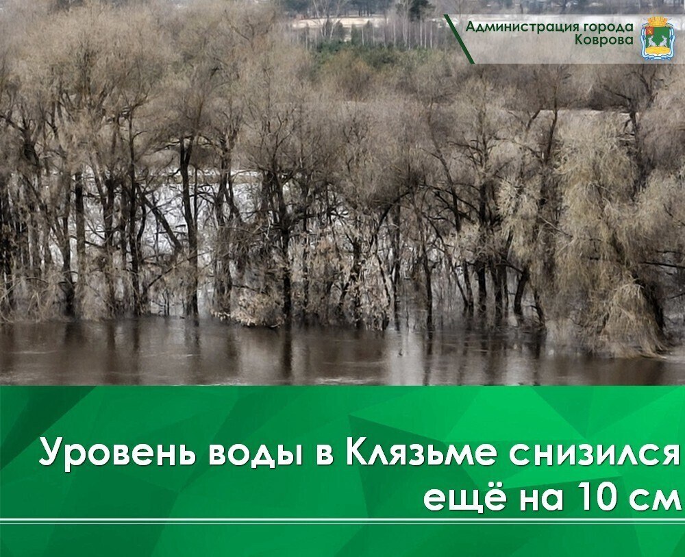 За последние сутки уровень воды в реке Клязьме снизился на 10 см и сейчас составляет 349 см. С момента пика паводка, который пришёлся на 12–14 апреля и достигал 377 см, вода отступила на 28 см.