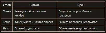 Оптимальное время для побелки — сухая, теплоя погода с температурой выше 5 градусов Цельсия. Рекомендуется проводить эту процедуру весной и осенью, избегая дождливых дней.