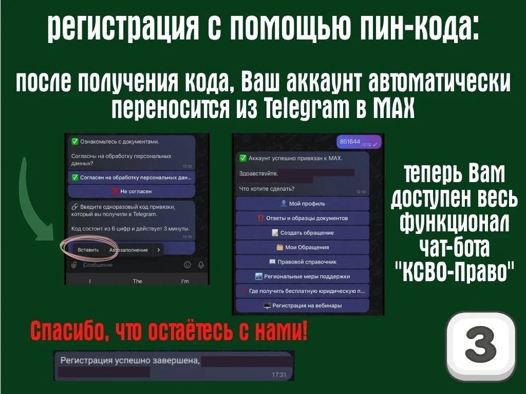 Переходите в чат-бот «КСВО-Право» в MAX и подписывайтесь: https://max.ru/id7705519422_bot