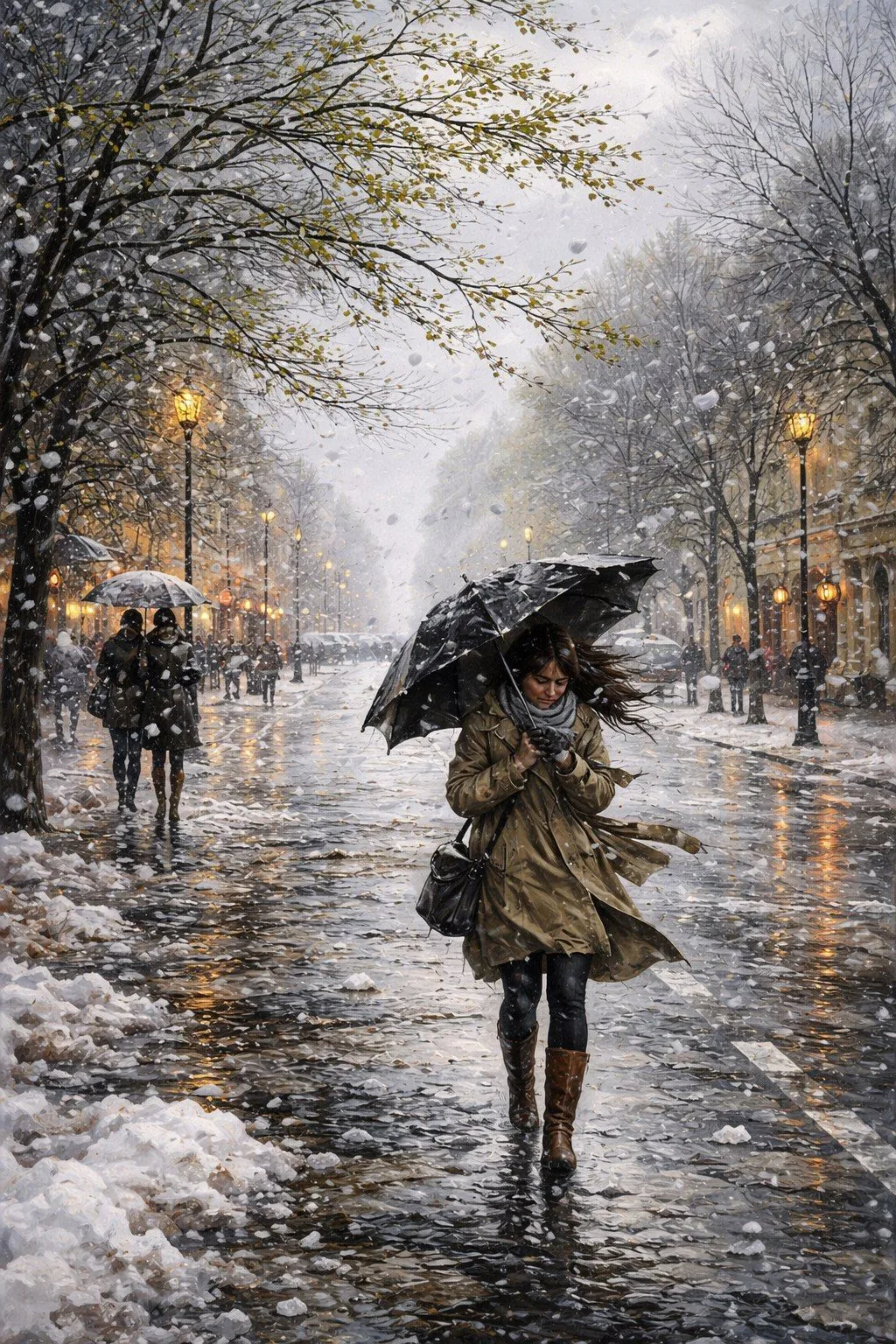 Сегодня и в течение всего завтрашнего дня ожидается дождь с мокрым снегом, ветер 8 – 13 м/с, температура днем - не выше +4 градусов, ночью — около нуля, на дорогах возможна гололедица.