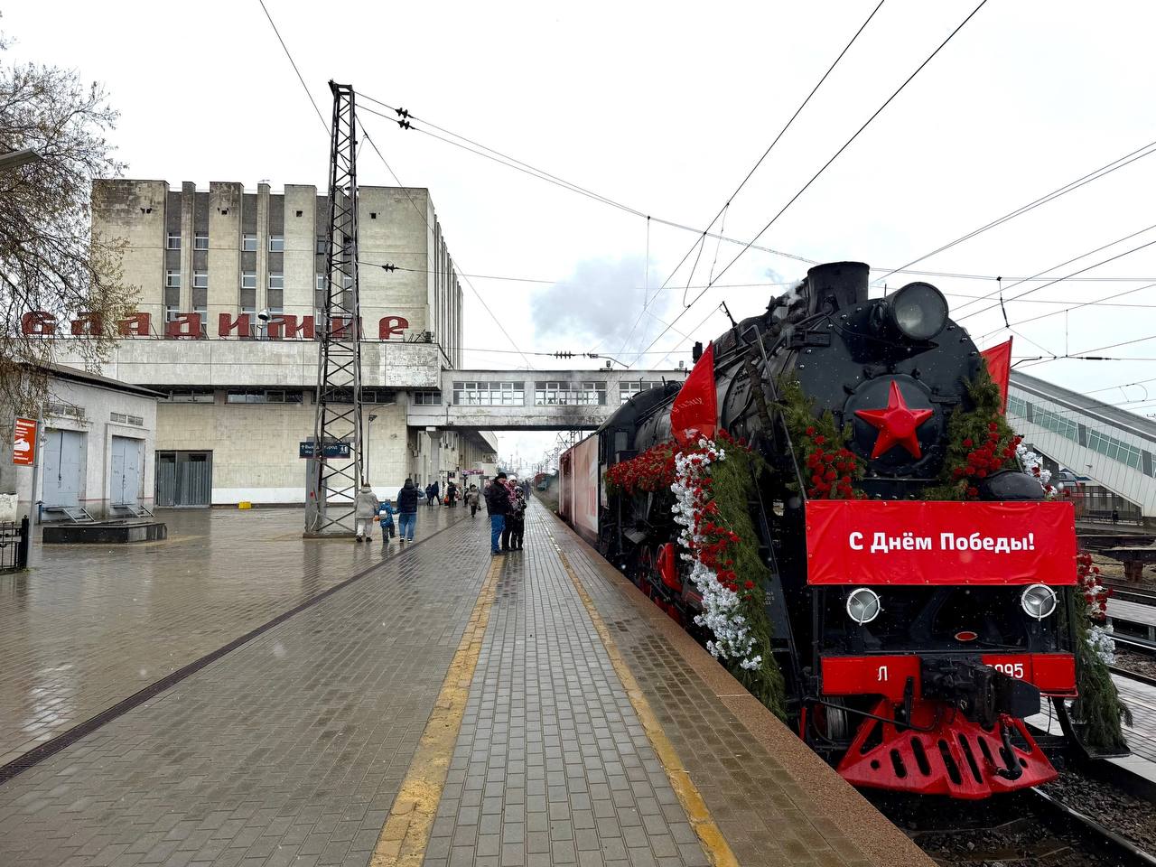 27 апреля легендарный «Поезд Победы» начал маршрут по Владимирской области. Первой остановкой паровоза стал региональный центр— город Владимир. После состав встретит Гусь-Хрустальный, а завершит турне по области поезд вечером на станции «Вековка» и завтрашним утром в Муроме.