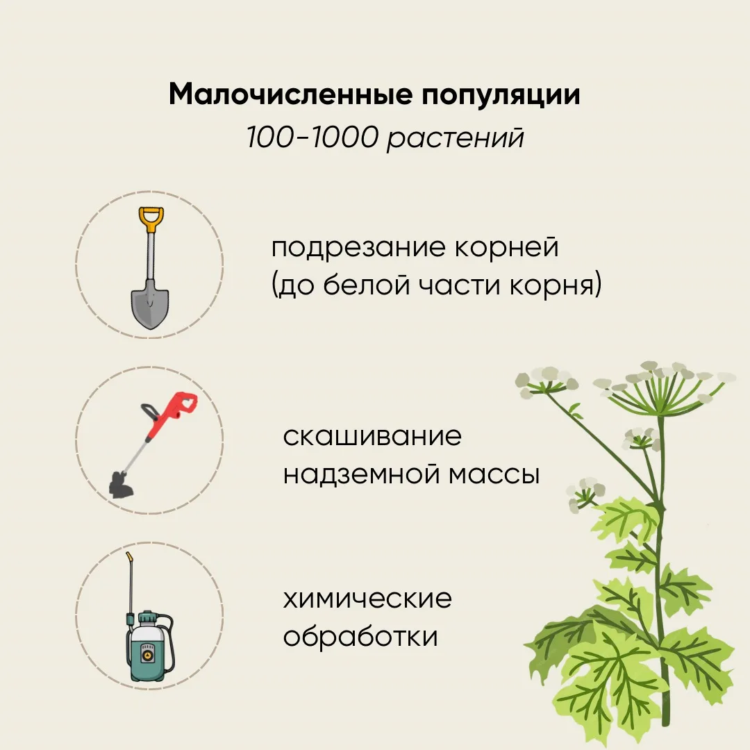 О том, какие мероприятия необходимо проводить для борьбы с борщевиком Сосновского, рассказали в карточках.